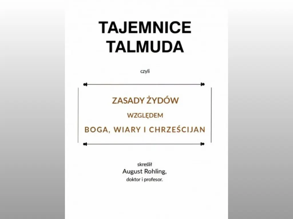 Tajemnice Talmuda to reprint kultowego dzieła prof. Augusta Rohlinga – niemieckiego teologa katolickiego, który skupiał się na polemice z Żydami i protestantami.